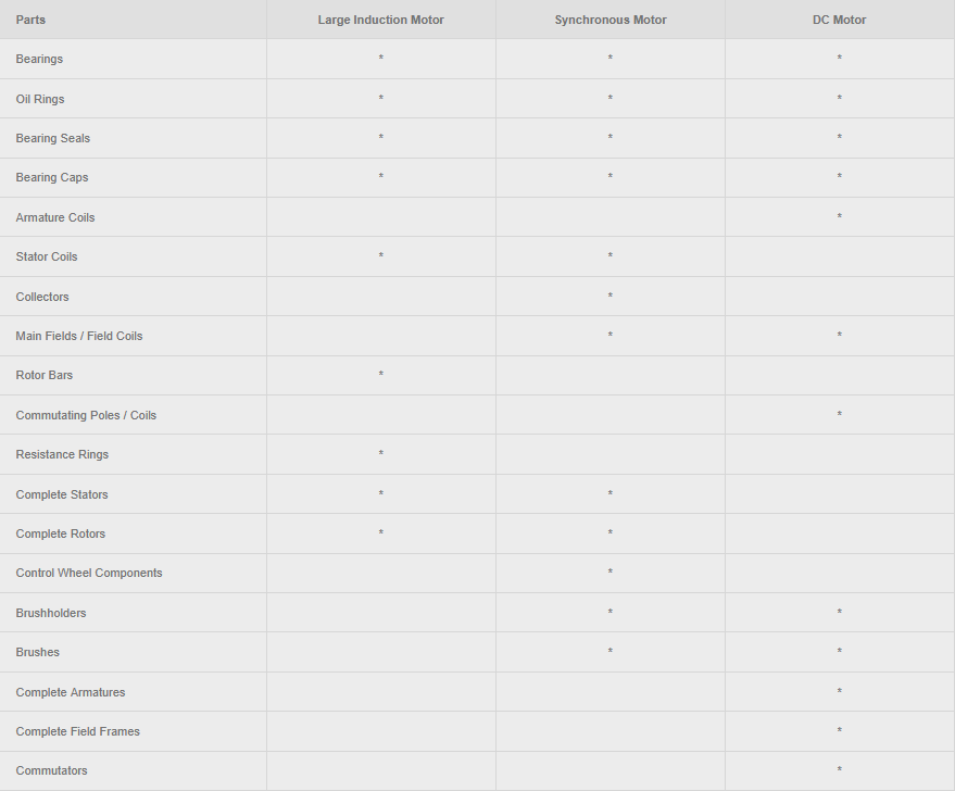 Ask us about our complementary analysis of your motor components. We’ll be happy to provide a recommended spare parts list for you. We can even prioritize the items for you. Remember, if you have a large TECO-Westinghouse motor, then we are the right people to call for genuine replacement parts. We can quickly determine what original equipment was included and provide you with the parts that will get you up and running again.